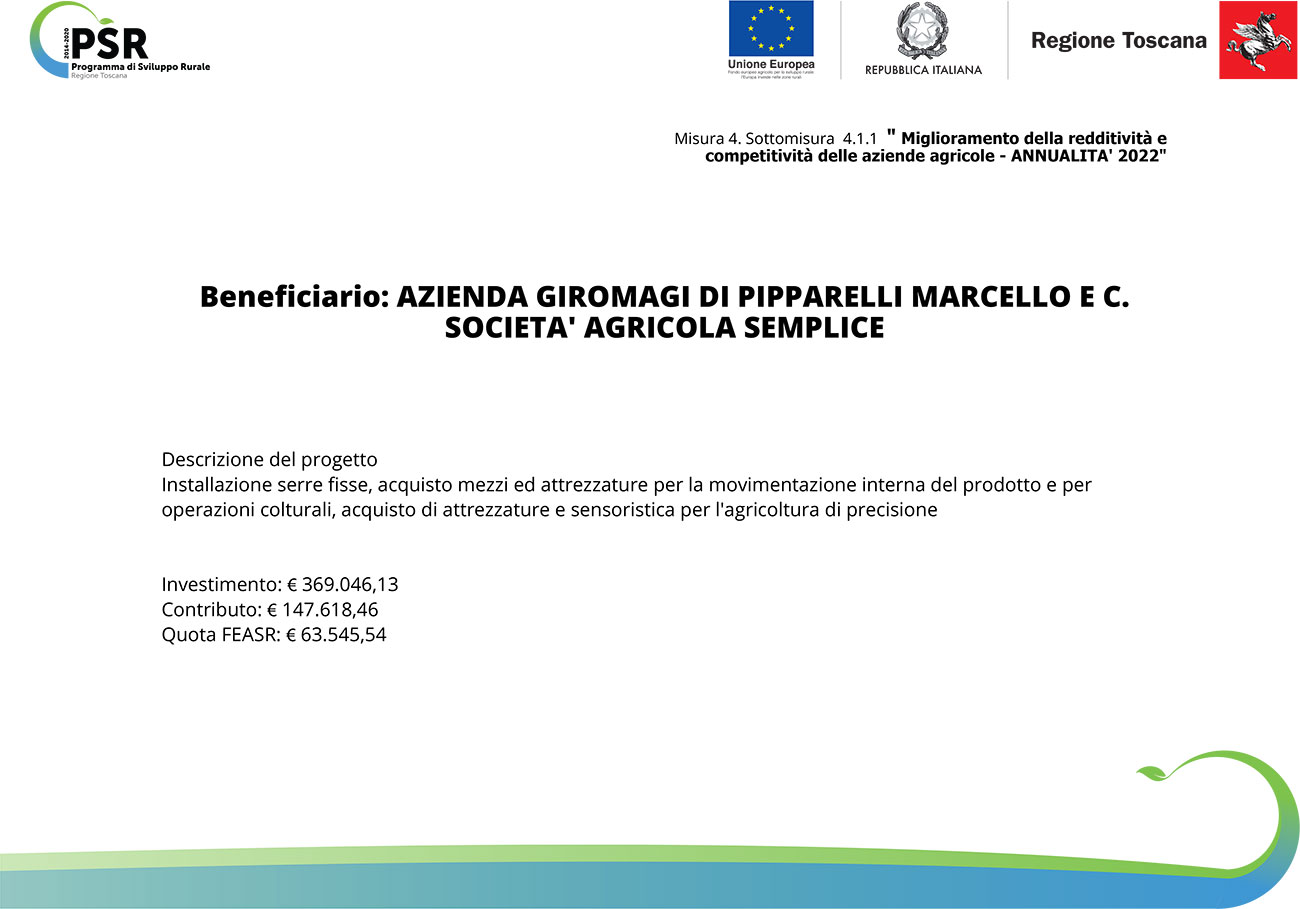 Il progetto ammesso ha perseguito come obiettivi principale l’ottimizzazione dei fattori della produzione.